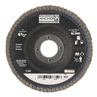 | Abrasive Flap Disc, 4-1/2 in, 40 Grit, 7/8 in Arbor, 13,000 rpm, Angled | |||