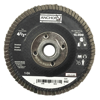 | Abrasive Flap Disc, 4-1/2 in, 60 Grit, 5/8 in - 11 Arbor, 13,000 rpm, Flat | |||