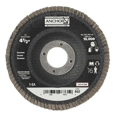 | Abrasive Flap Discs, 4 1/2 in, 80 Grit, 7/8 in Arbor, 13,000 rpm | |||