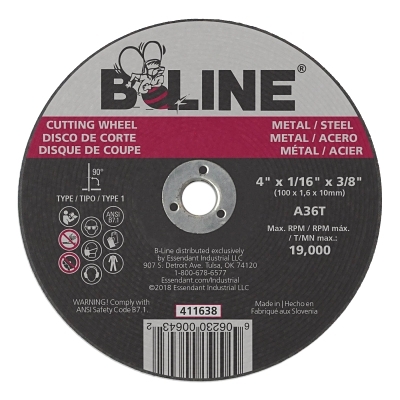 | Cutting Wheel, 4 in dia, 1/16 in Thick, 3/8 in Arbor, 36 Grit, Alum Oxide | |||